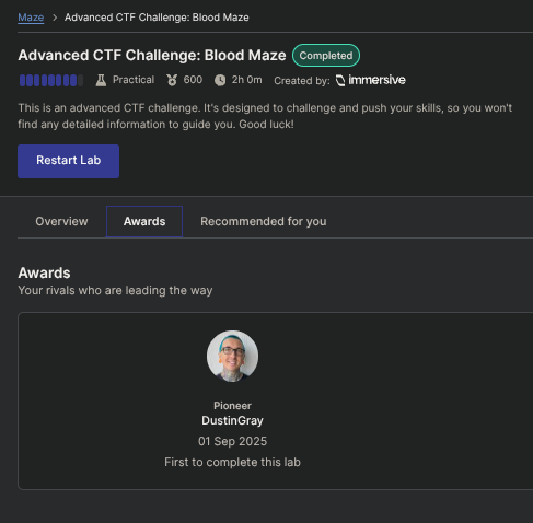The Blood Maze lab was part of a wider CTF challenge for Immersive Community earlier in 2025.