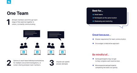 Hi Joe, that would depend on why you were exercising multiple teams at once. The most common use case is a head to head battle where not only does the winning team get prizes but more importantly they get to gloat about how amazing they are. In this scenario you would keep an eye on the teams scores and submissions and make sure that the teams are fully engaged, but beware if it is a competition some may hold back their answers until they have them all and swoop in for the surprise victory...