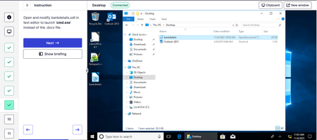 Hi there! I'm a little stumped on what 9 is prompting me to do? So it's asking me to open and modify 'bankdetails.odt' and to launch the file as 'cmd.exe' instead of .docx file, but when I right c...