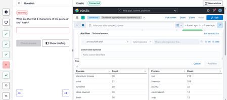 Hello, I'm stuck on Q11 of this lab and would greatly appreciate some help, please. I'm a little confused as to how to go about answering the question? If I use the filter for - Processhash.sha1 IS ...