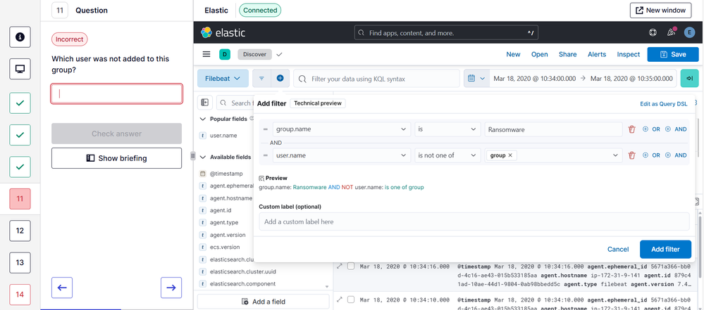 • Literally just need to put message : "group" into the KQL search bar