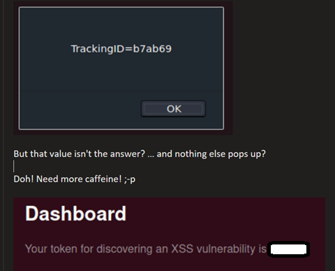 I`m already loggedin to the dashboard and i`m also able to store a onmouseover XSS. However i can get the document.cookie which shows only the TrackingID. But how to find the token?