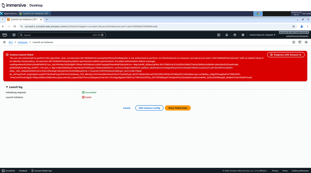 You are not authorized to perform this operation. User: arn:aws:iam::250176780079:user/aBCbsrMbk6Um5GQlxs7G is not authorized to perform: ec2:RunInstances on resource: arn:aws:ec2:us-east-1:250176780079:volume/* with an explicit deny in an identity-based policy. Encoded authorization failure message: ktHE_tnENT_yEI9xSX3pGA8Rv36ZXZirDZ_QIdV4cyWE9UtT_w-drjPxlGAyZIXfOUOKRgN42SjowCSdb5GLXvXfzYF0VLxOAtrmhyJcQOVwkXSuRrRVJ5-Bov1rX_uAt4E-VWR07oGDsl1LnJvKoNxgyVRV0fDUMgvzFcnskDDn_toD2yrFQeaQZLeVEA8dnk0IvNVtsXRp_KB3Mbc6kIkpbkCDzrAZMswqUI92w04__Hm2GATKTNr4Ok7ryj3fX9pqNmL4GxWxnamQitqaWyuQo45WD-4IMqu1OPVfxixHJ9OcDYFFWlFkc6w8-lXwwLzk5O5SvAhHbMPjM8JYpE9ECvZL1UDnTy8L39hOB8QS-p2YIayS4AbcUK4GXCzVqUrUYL5p5Jid9DrboEgXgMhgRg87YQX_H_4fiiGibLN_3N7-64hKyGPgKTsfXv1Yq7Zl-wJ0ckgo4QfQyxNNdb6iqRUm8WFtShWidZujtE3GdMXsqeSUKYsx2rDVEaX2qlFF7M6EDErOvhVa2Ify8X9VKkkgcEP6kkwiO-WLz7nHEnnNj8lCzNadkkc6tXsBWTerF6Q7kdO0lqczi3-c3nUSAH7q79GCX49IfvTHU6AOT59VWJCCKw7XjAYReMHXpeH9yUDQee6JlnAQ2qeuX09TTpC9LcZWMbgtr_cDd7rTJmhwdUTLkN3sSyzw0KuU3n9kgu0bHZWkm0P7X4y7E0mOXSZ2BGOni9OyEy_D8DYV9Y8f3JJ8XBT5_jzNInxSo0hogSginKSnH9xZUq_wuyxCPu1L2znbcM7KFrW1wkivq8OoGek