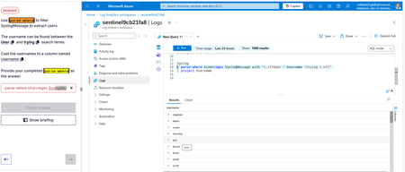 Hi yazhang Great work so far! Your query does run, but the lab is checking for a very specific pattern. In your screenshot, you’re using the regex version of parse-where, and your column name doesn’t match what the task asks for. The parse pattern you’re using is also slightly different from the one described in the question.