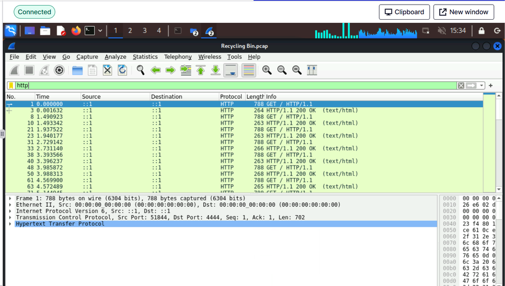 From what Zippy is alluding too, they want me to go into the - Recycling Bin.pcap, where I have also filtered it to http, as I would have thought the answer may be in the (text/html) packet.