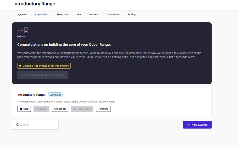 The problem I am encountering is, that snaplabs does not add any systems to the range and keeps on hanging. Here are some screenshots: