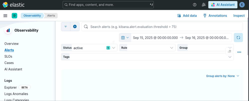 18 days agoFor question 1, I can see an active alert but it appears I'm not able to view it? I also played about with the option for Group alerts by: ...... - yet to no avail? Am I doing something incorrectly?