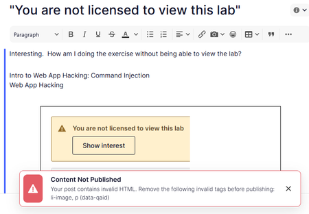 I've seen a similar issue before when pasting content from another source (like Google Docs or Word), sometimes hidden HTML or unsupported formatting tags can transfer over and trigger this error.
